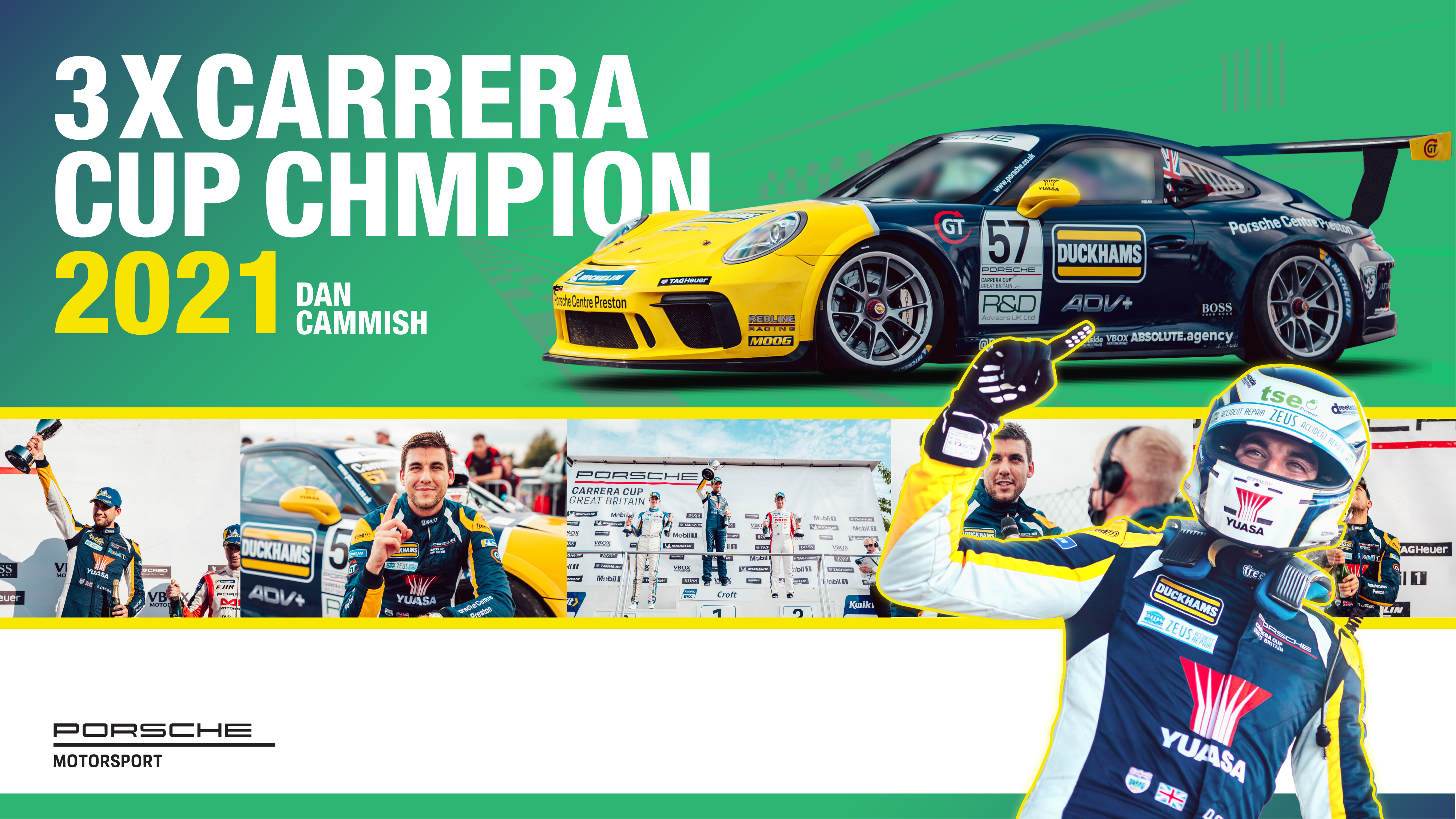Dan Cammish yang disponsori Duckham memenangkan Piala Porsche Carrera GB.