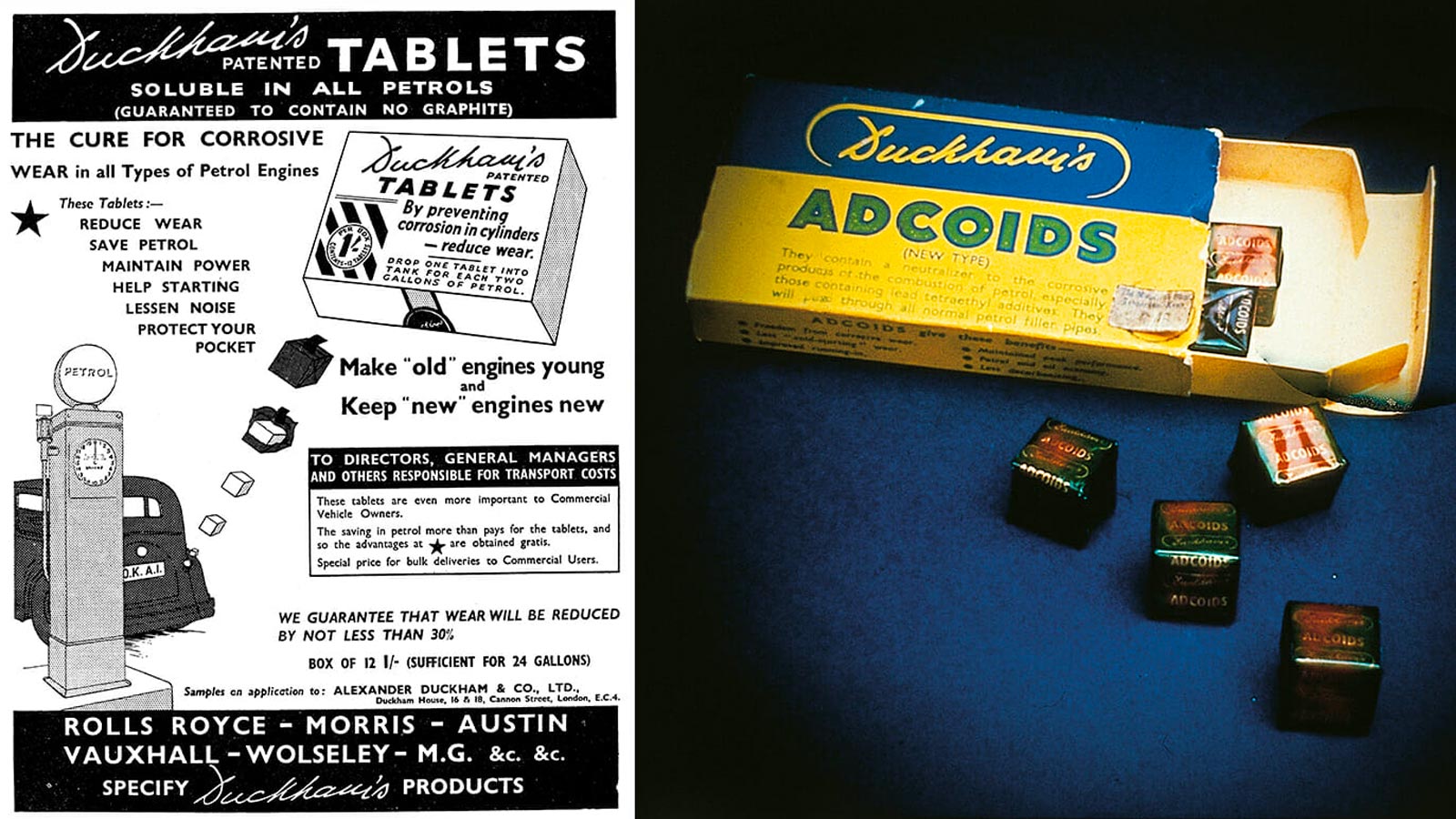 Banyak merek klasik ternama, termasuk Morris, Wolseley, Austin, Bentley, Invicta, Rolls-Royce, Humber, dan Rover, menjadikan Duckhams sebagai pilihan utama untuk oli mesin mereka.