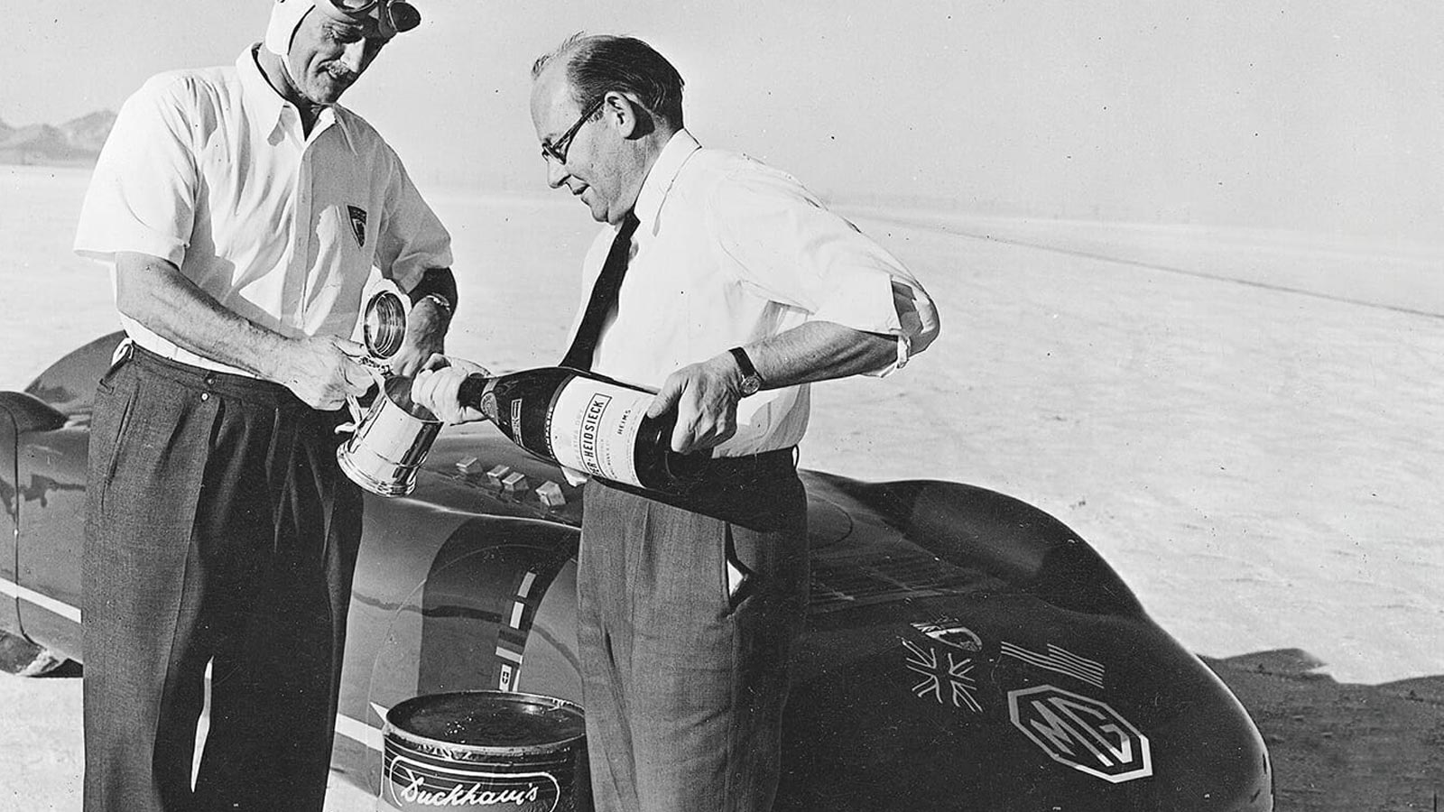 Goldie Gardner memecahkan rekor kecepatan darat di Utah dengan mobil MG-nya yang menggunakan oli Duckhams.